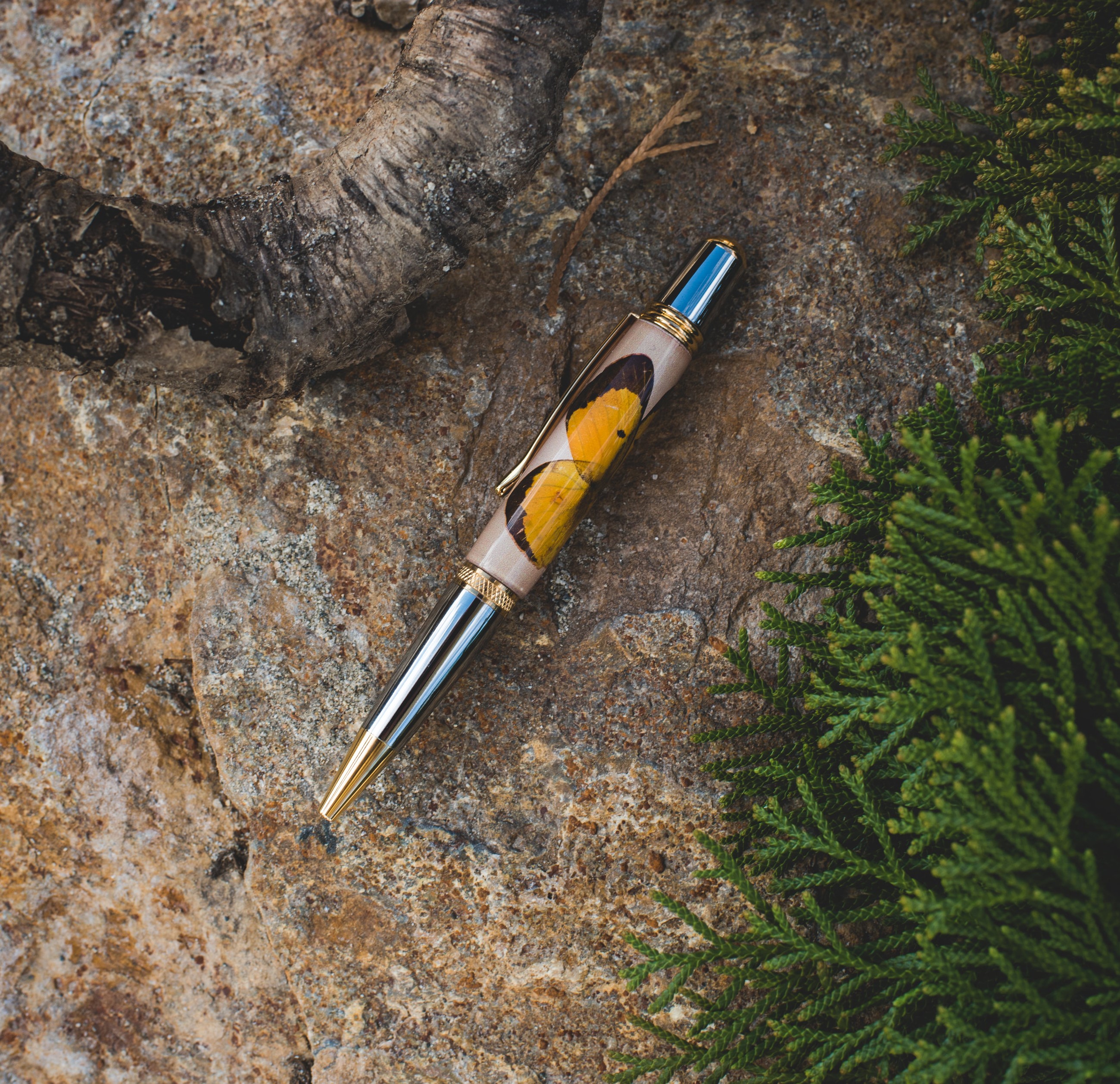 This pen captures and preserves the everlasting beauty of real butterfly wings. Average life span of a butterfly is one month.